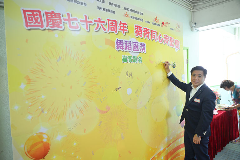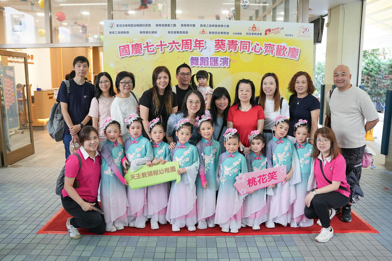 由荃灣及葵青區幼稚園校長會、葵青發展義工團、葵青青年團、葵青工商業聯會、葵青工商業聯會、香港工商總會葵青分會、葵青婦女網絡、青衣鄉事委員會、葵青民政事務處合辦,民政事務總署及政府資助計劃讚助,慶祝國慶七十六周年 葵青同心齊歡慶舞蹈匯演經已圓滿結束。